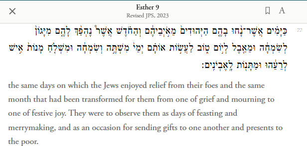 „…hogy azokat lakoma és öröm napjaivá tegyék, ajándékküldéssel egyik ember a másiknak, és ajándékokkal a szegényeknek.”